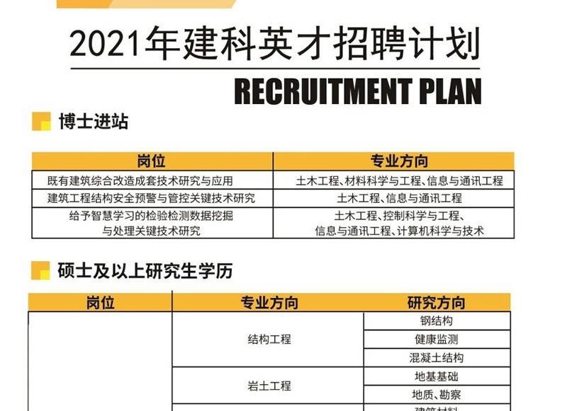 2021建科英才招聘計劃